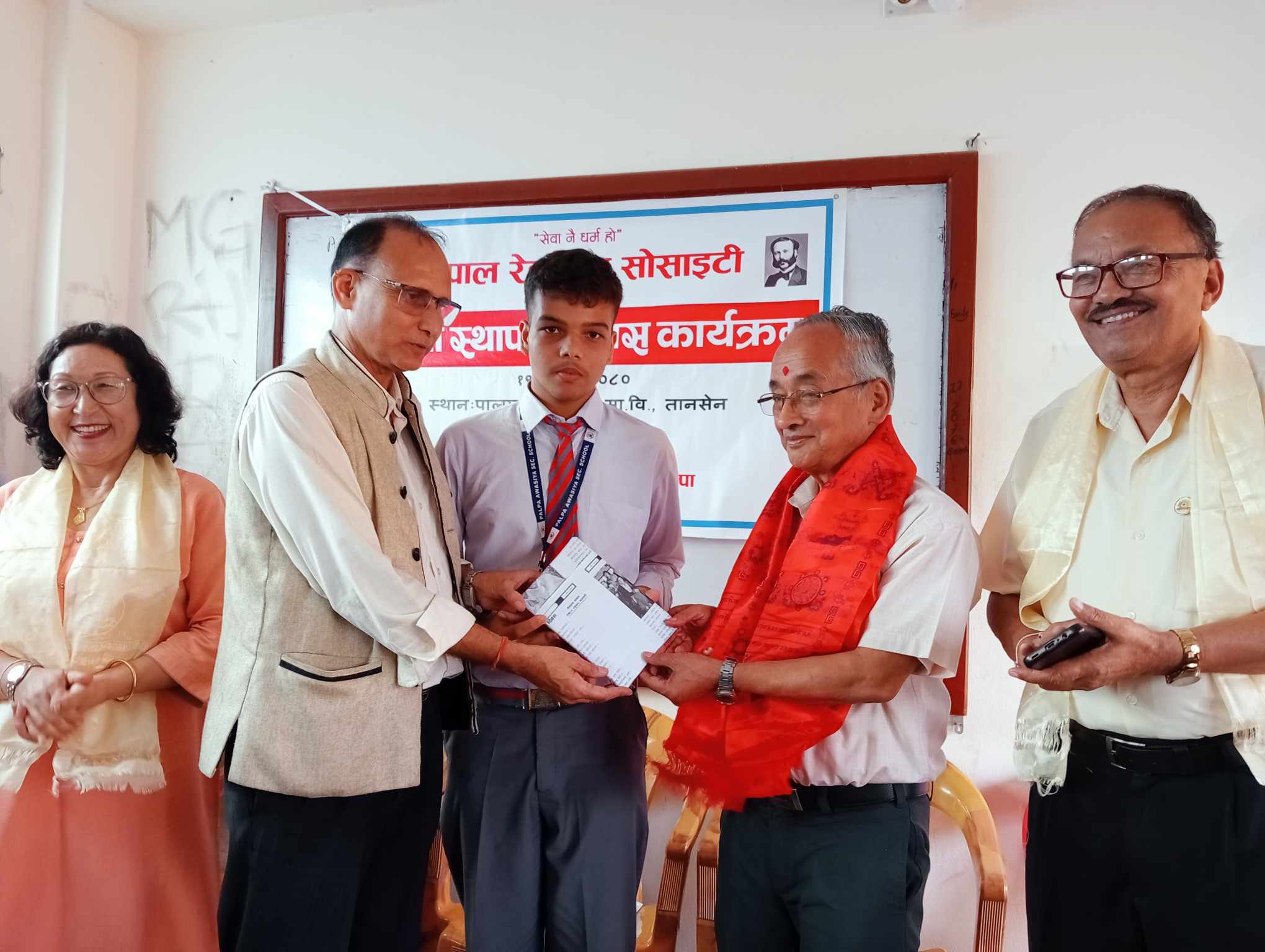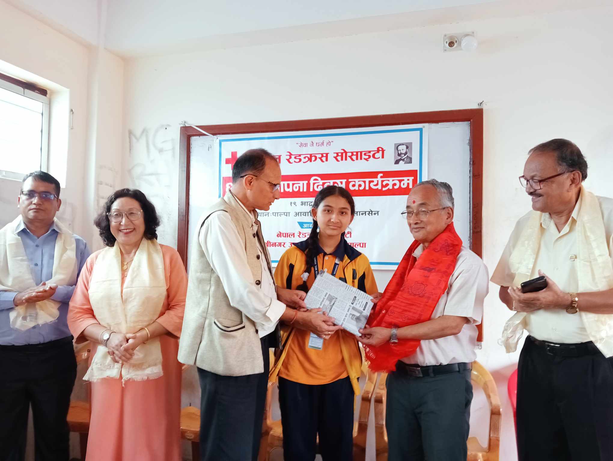 पाल्पा: नेपाल रेडक्रस साेसाइटी श्रीनगर उपशाखाले नेपाल रेडक्रस साेसाइटीकाे ६१ औँ स्थापना दिवस मनाएको छ। “सेवा नै धर्म हाे ” भन्ने मूलमन्त्र बोकेको नेपाल रेडक्रसको यस बर्ष ” मनैदेखि सेवा” नाराका साथ नेपाल रेडक्रस साेसाइटीकाे स्थापना दिवस पाल्पा आवासीय माध्यमिक विद्यालयमा मनाएको हाे।