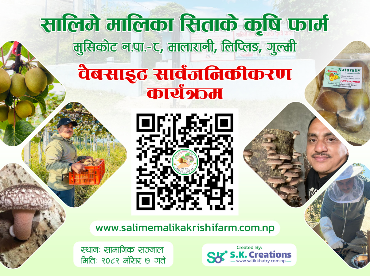 गुल्मी: गुल्मीको मुसिकोट नगरपालिका वडा नं. ८, मालारानी, लिप्लिङमा अवस्थित ‘सालिमे मालिका सिताके कृषि फार्म’ यतिबेला व्यावसायिक कृषिको एक सफल उदाहरण बनेको छ। विगत एक दशकदेखि निरन्तर सञ्चालनमा रहेको यो फार्मले परम्परागत खेती प्रणालीलाई बदल्दै आधुनिक र उच्च मूल्य भएका कृषि उपजको उत्पादनमा फड्को मारेको छ। फार्मका सञ्चालक यम बहादुर खत्रीको अथक मेहेनत र दूरदर्शी सोचका कारण यो फार्म जिल्लाकै कृषि गन्तव्यको रूपमा स्थापित हुन पुगेको हो।