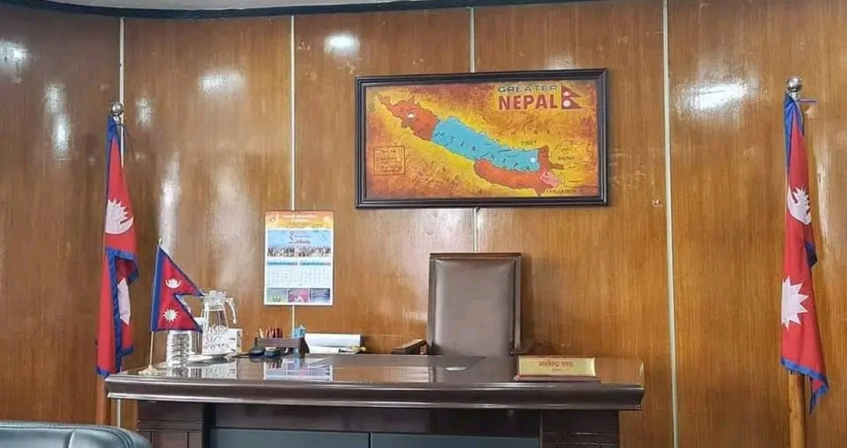 काठमाडौंका मेयर बालेन शाहको कार्यकक्षमा ‘ग्रेटर नेपाल’ को नक्सा
