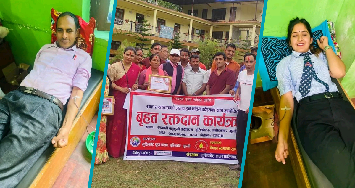 मुसिकोट युवा क्लवको आयोजनामा हिजो सम्पन्न रक्तदान कार्यक्रममा १११ जनाले गरे रक्तदान