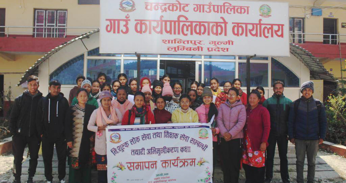 चन्द्रकोटको नमुना अभ्यास, गाउँमा युवा टिकाई राख्न निःशुल्क लोकसेवा र शिक्षक सेवा कक्षा