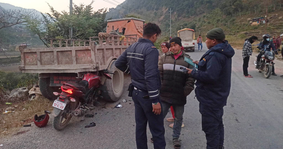 बागलुङको बडिगाडमा मोटरसाइकल दुर्घटना हुँदा वडा सदस्य घाइते