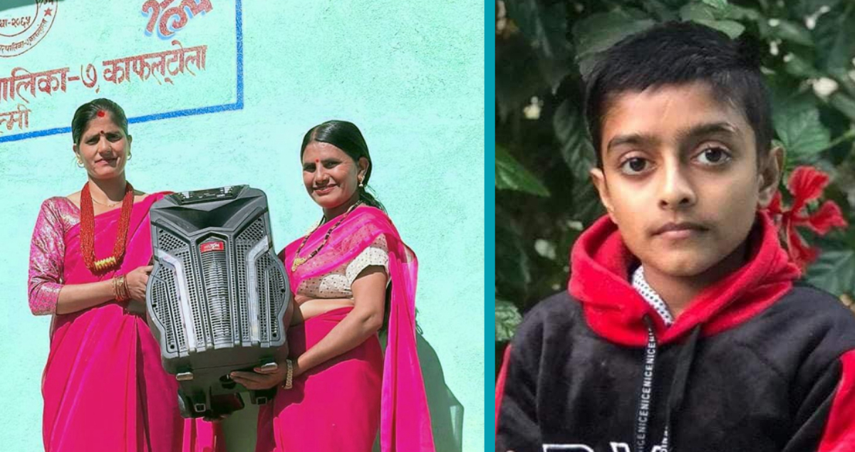 छोराको जन्मदिनको अवसरमा काफ्ले दम्पतीद्वारा आमा समूहलाई साउन्ड बक्स प्रदान