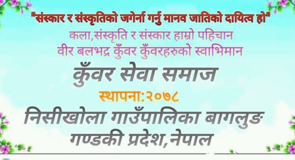 बागलुङ: बागलुङ जिल्लाको निसीखोला गाउँपालिकामा कुँवर सेवा समाज निसीखोला गाउँपालिका बागलुङ गण्डकी प्रदेश नेपाल गठन गरिने…